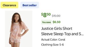 This Justice PJ set — it’s basically the perfect sleep outfit for warmer nights. The top is a cute short-sleeve tee with a little Justice logo graphic, and the shorts are pull-on so she can just slip them on and go — no fuss. They’ve got those tiny rose and bow details that make them so fun and girly, but still comfy enough to actually sleep in. And bonus: both pieces are machine washable so clean-up is zero drama. It comes in a bunch of sizes from 5–18 and even plus so you’re covered as she grows, and usually in easy-to-love colors like navy, coral, or pink. It’s one of those sets that doesn’t feel too “little kid” but still feels fun — perfect for bedtime, movie night, or just lounging around the house.