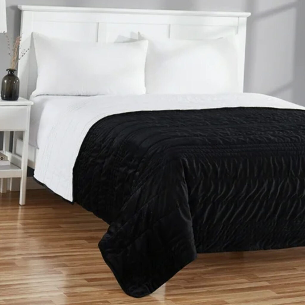 Home » Walmart Deals » King Quilt – Luxe Black Velvet – Zig Zag Stripe, Reversible Bedding