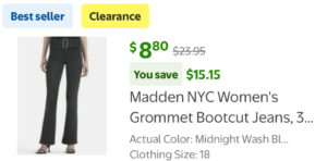 $8.80 Madden NYC Women’s Grommet Bootcut Jeans, 32″ Inseam, Sizes 00-18