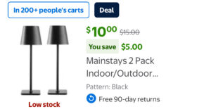 Home » Household Supplies Deals » Mainstays 2 Pack Indoor/Outdoor Rechargeable 13″ Table Lamp