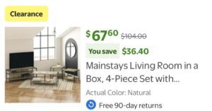 $67.60 Mainstays Living Room in a Box, 4-Piece Set with Reversible Tops, Natural and Black