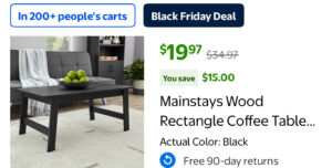$19.97 Mainstays Wood Rectangle Coffee Table, Black Finish