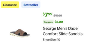 $7.99 George Men’s Dade Comfort Slide Sandals, Size 7-13