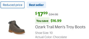 $17.99 Ozark Trail Men’s Troy Boots, Size 7-13