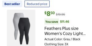 $8.50 Feathers Plus size Women’s Cozy Lightweight Fleece-Lined Stretch Multipack Leggings for Everyday Wear, 2 Pack, Sizes 1X-4X
