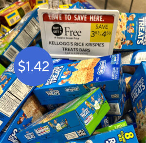- Use (2)–$0.50/1 Kellogg’s Rice Krispies Treats Crispy Marshmallow Squares (6 ct. or Larger, Any Flavor, Mix or Match)