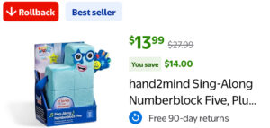 $13.99 hand2mind Sing-Along Numberblock Five, Plush Singing Toys, Music Playing Stuffed Animals, Ages 3+