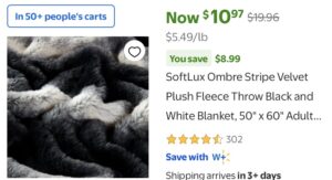 $10.97 SoftLux Ombre Stripe Velvet Plush Fleece Throw Black and White Blanket, 50″ x 60″ Adults and Teens