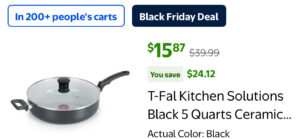 $15.87 T-Fal Kitchen Solutions Black 5 Quarts Ceramic Non-Stick Jumbo Cooker Sauté Pan with Lid & Helper Handle