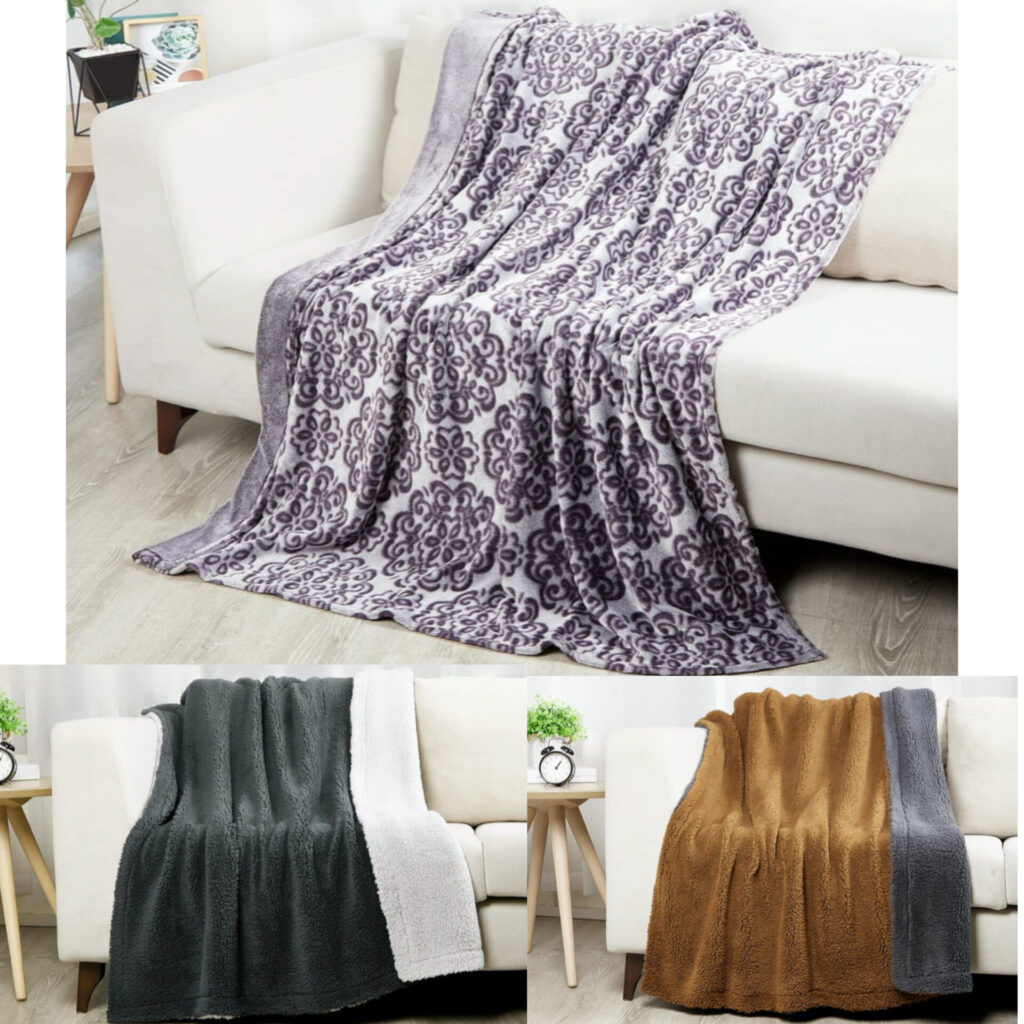 $6.xx SoftLux Frosted Purple Texture Medallion Velvet Plush Fleece Throw Blanket, 50″ x 60″, Adults and Teens