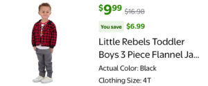 $9.99 Little Rebels Toddler Boys 3 Piece Flannel Jacket Set, Sizes 2T-4T