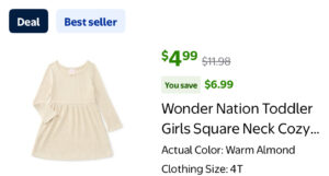 $4.99 Wonder Nation Toddler Girls Square Neck Cozy Knit Dress, Sizes 12M-5T
